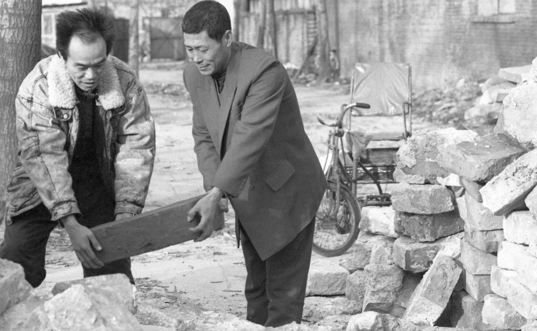徐子旺和同事们每天穿梭在大街小巷、百姓家中,不落一块抢运捐献的城砖。他们没时间回家,吃住都在工地。