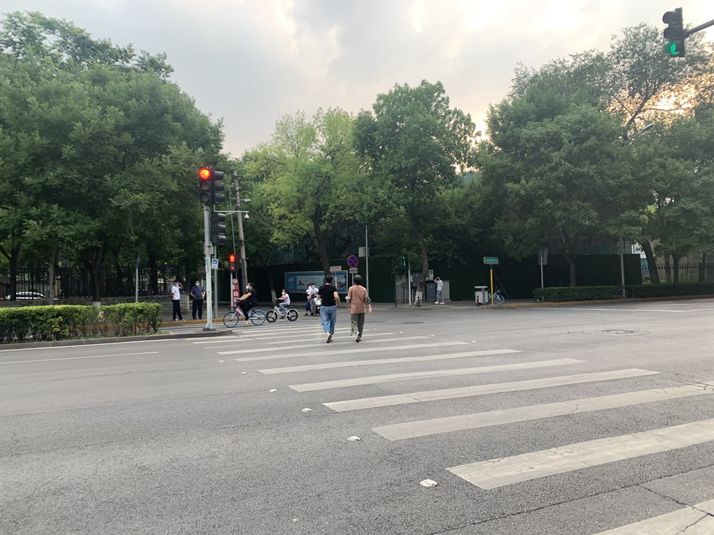 在斑马线上,无视交通信号灯、乱穿马路的行人也让人捏了把汗。在左安门内大街上的一个丁字路口,两位女士左右看了两眼,发现没车通行,“咱们赶紧走”,于是两个人加快脚步,就这样直接过街了。此时距离人行信号灯转为绿灯仅仅还有十几秒。