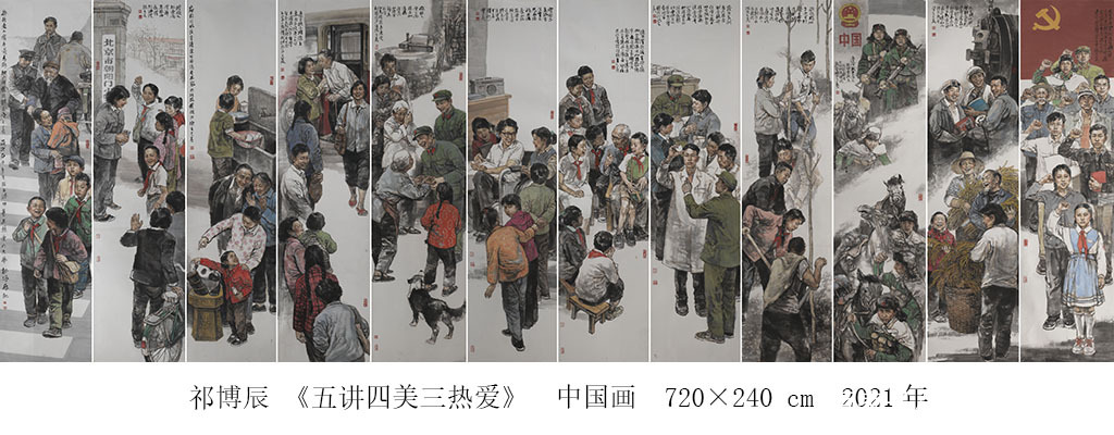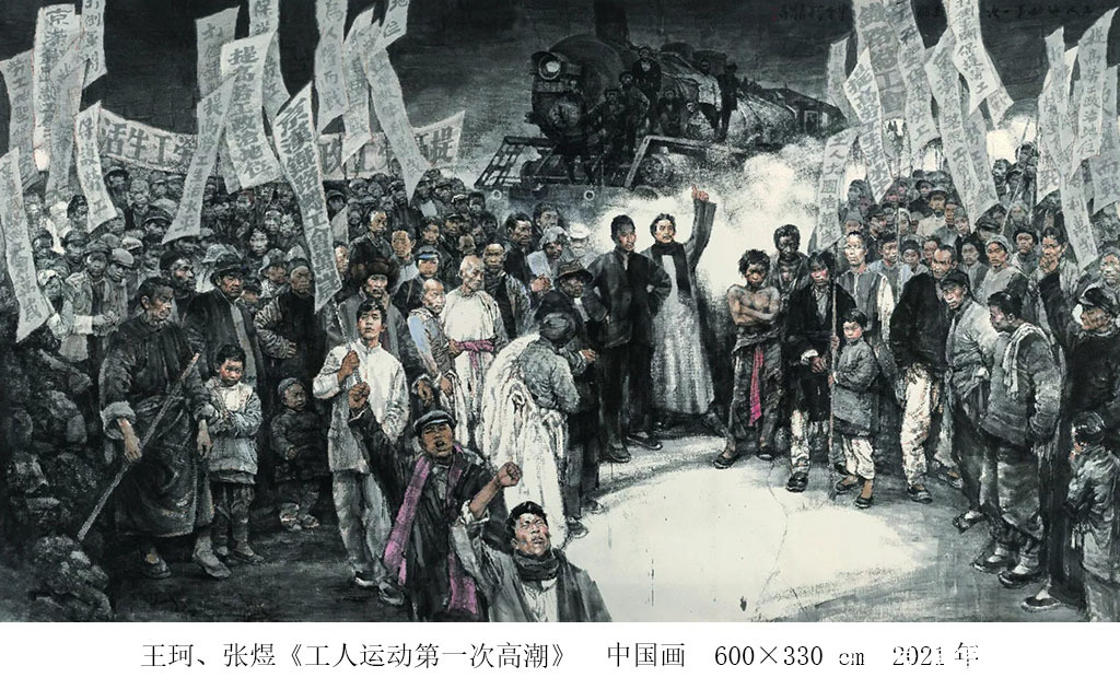“不忘初心 继续前进——庆祝中国共产党成立100周年大型美术创作工程”主要表现从1921年至2021年,中国共产党成立以来的重大历史事件、杰出历史人物和优秀共产党人,是新中国美术史上规格最高、规模最大、参与创作人员最多的重大主题美术创作工程,是新中国美术史上主题创作的典范。美术学院以高度的政治责任感和使命感,出色地完成了创作任务,用饱含情感的艺术创作作品向党和人民交出了答卷。