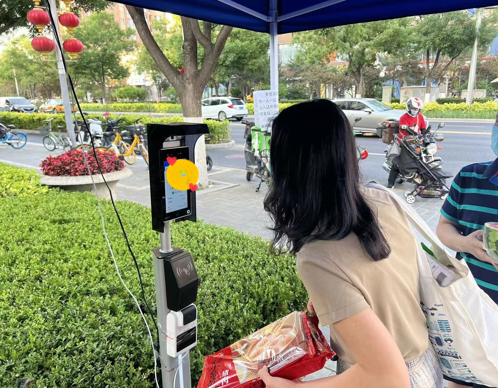居民有了自己的专属出入证,社区卡口的高科技加持也提高了居民进出小区的通行效率。在京贸南区社区卡口,新投入使用的电子测温核酸核验机让居民赞不绝口。居民可通过刷脸、刷身份证代替扫描健康宝二维码,不仅方便快捷,还解决了部分老人因无智能手机,无法扫码的问题。