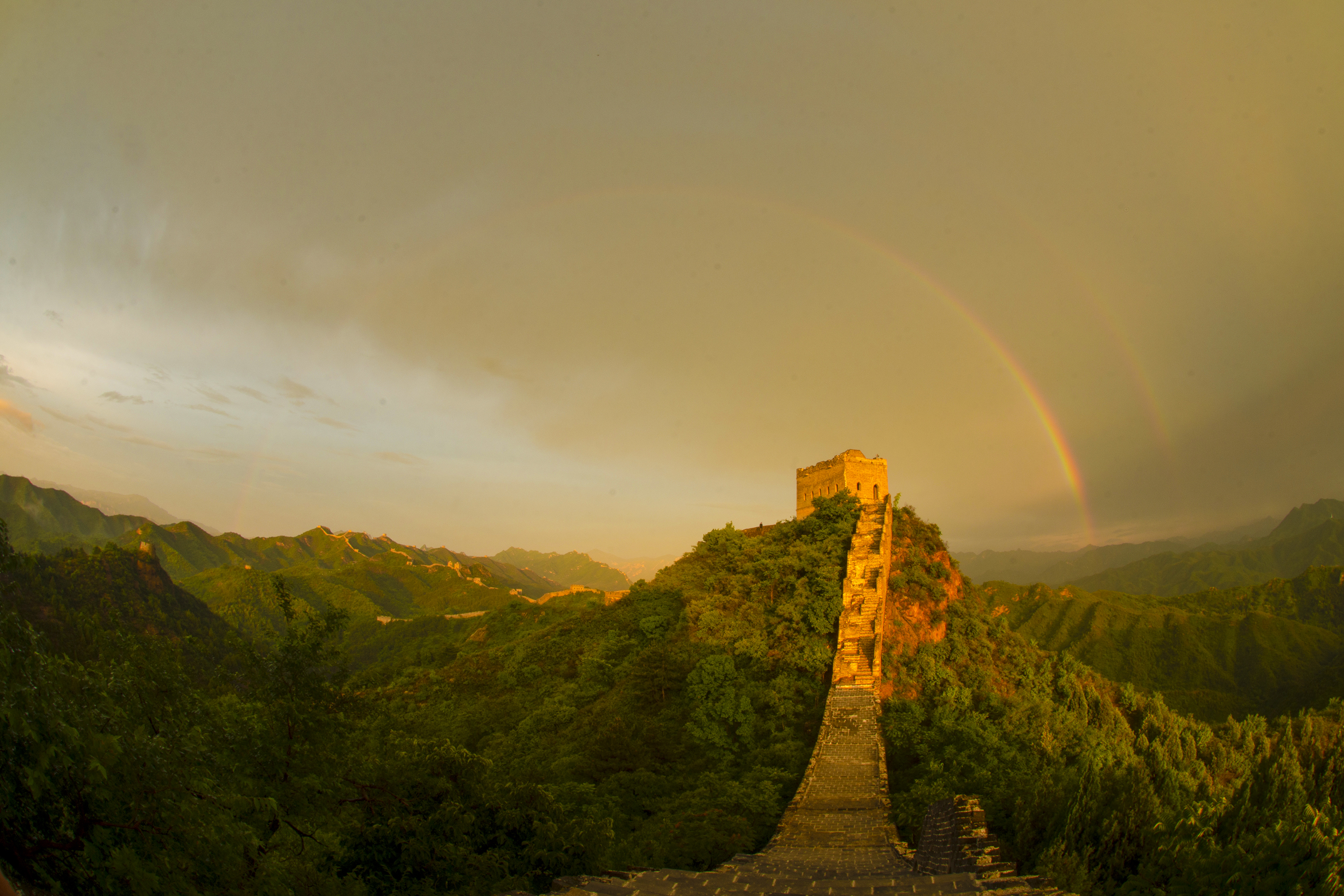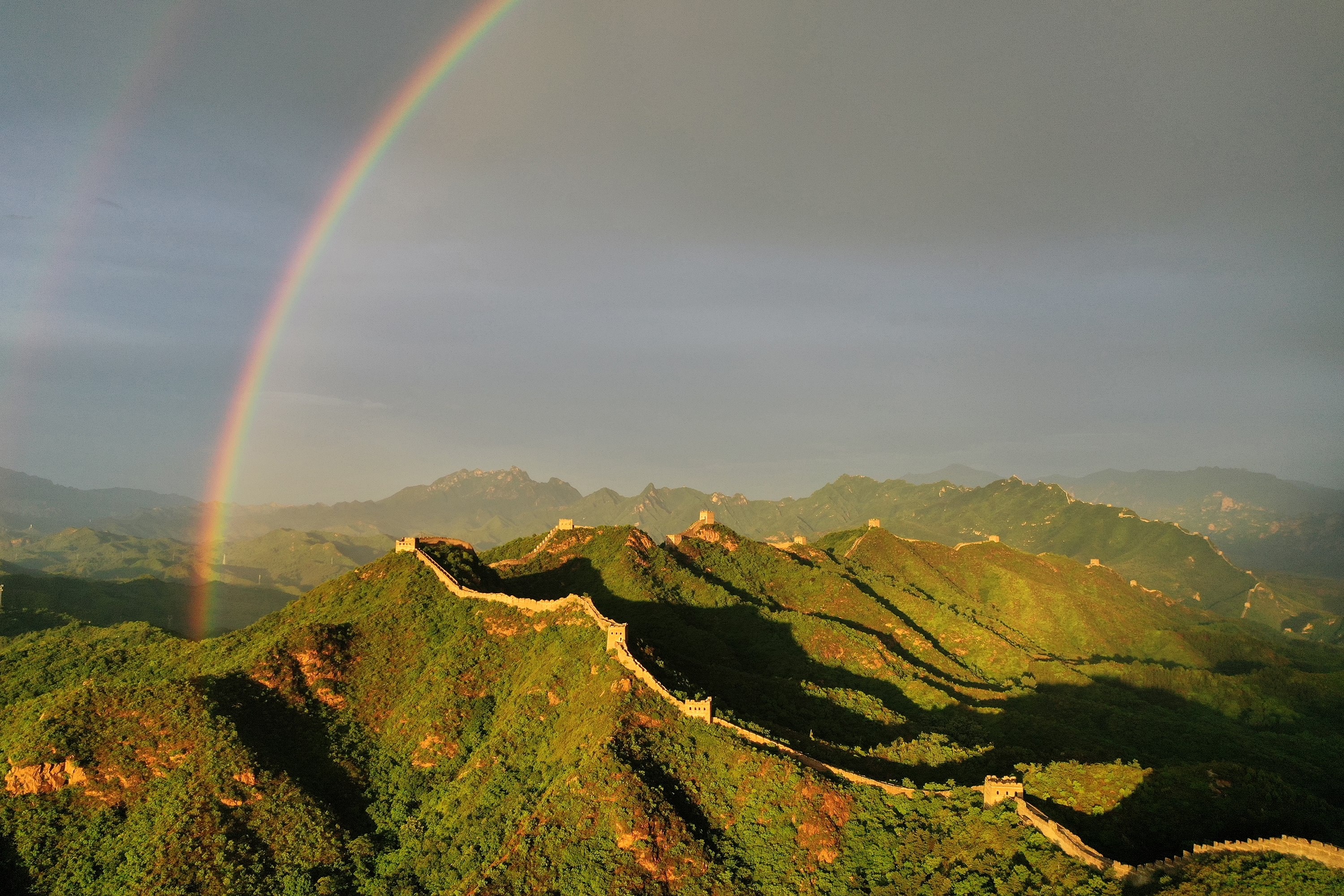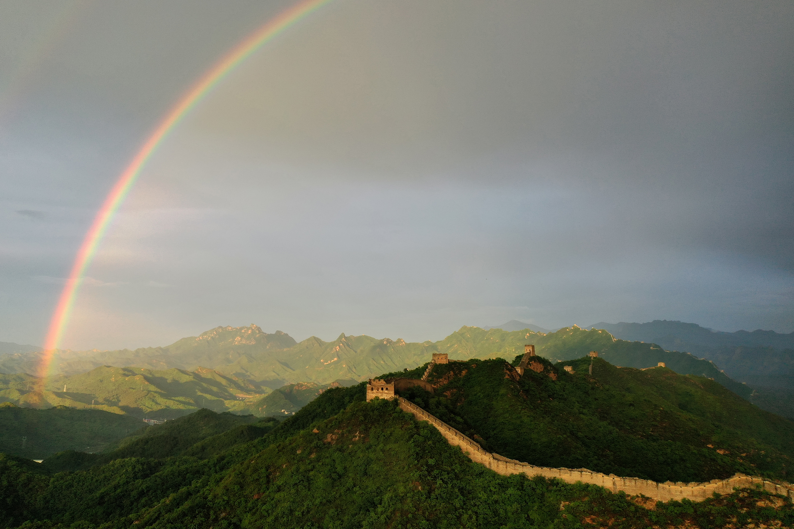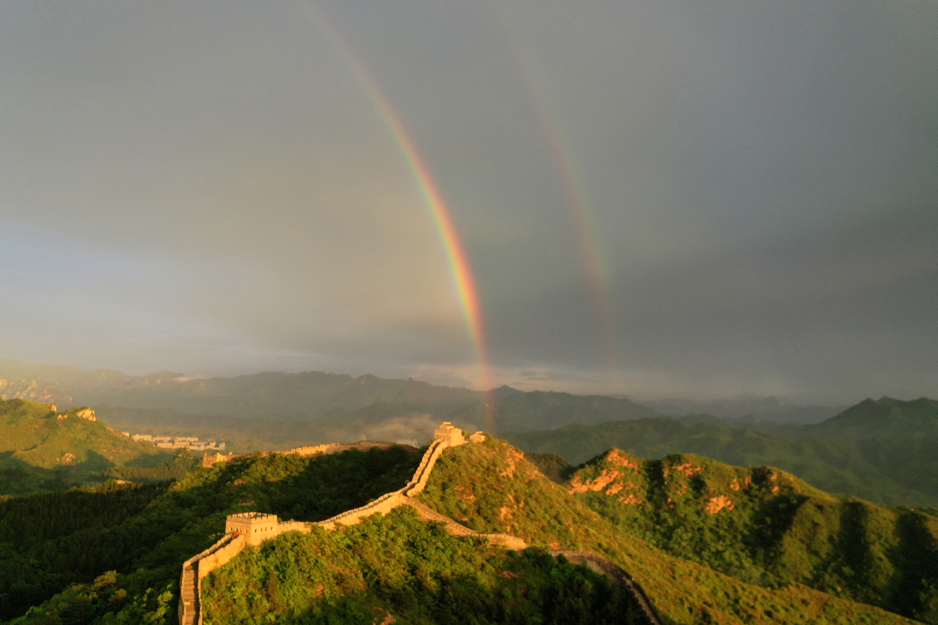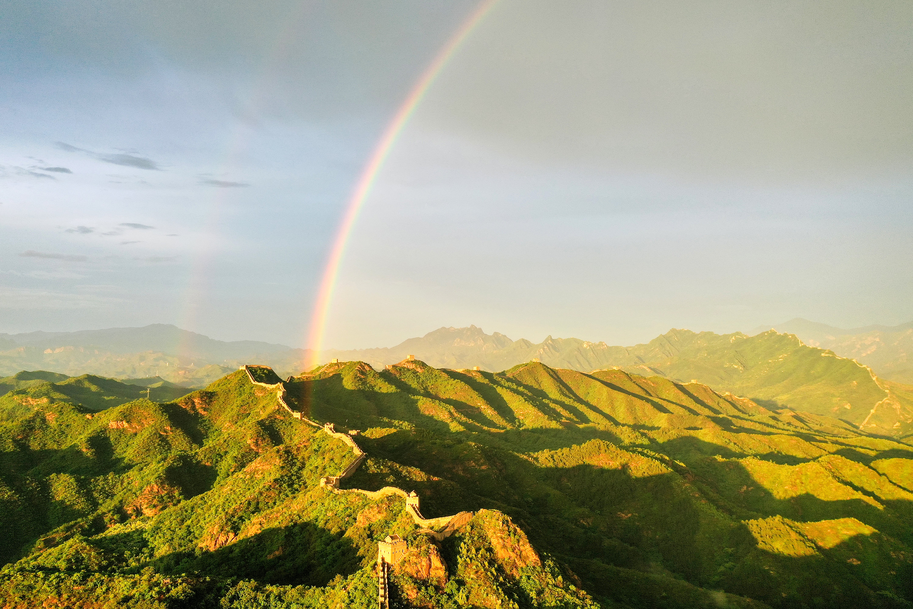 河北滦平:雨后金山岭长城出现绚丽双彩虹