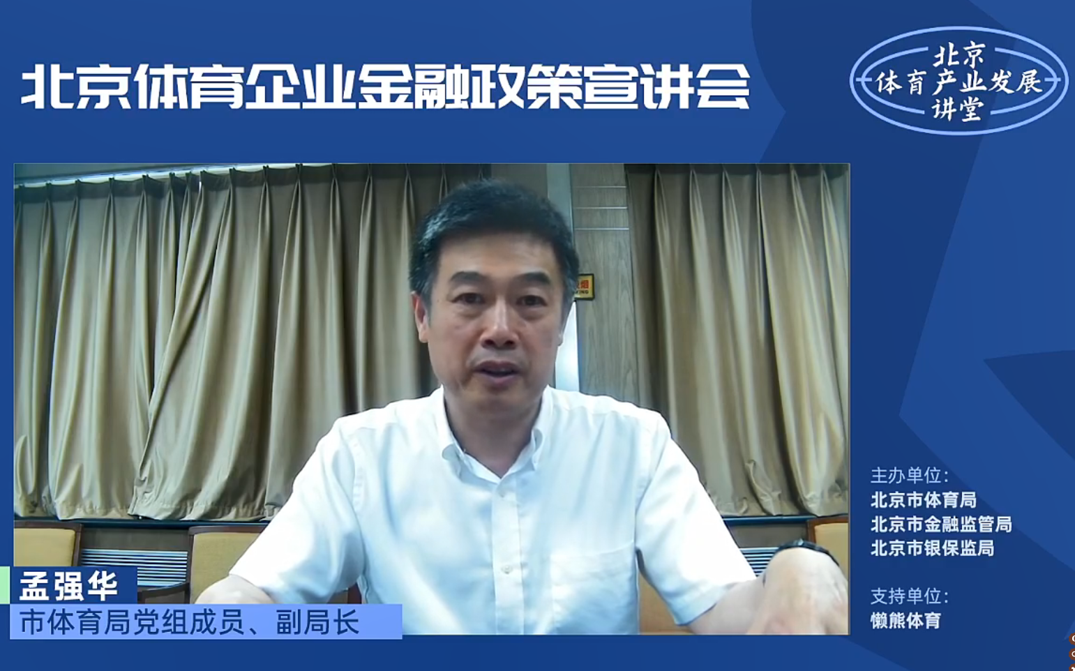 为高效统筹疫情防控和经济社会发展,扎实推进落实国家和北京市稳定经济增长相关措施,切实减轻疫情防控对中小微企业生产经营的影响,积极帮助体育服务业企业渡过难关、恢复发展。16日,针对本市体育企业面临的实际困难,北京市体育局联合北京市金融监管局、北京市银保局共同主办了北京市体育企业金融政策线上宣讲会,通过搭建企银平台为相关企业纾困解难,共谋发展。