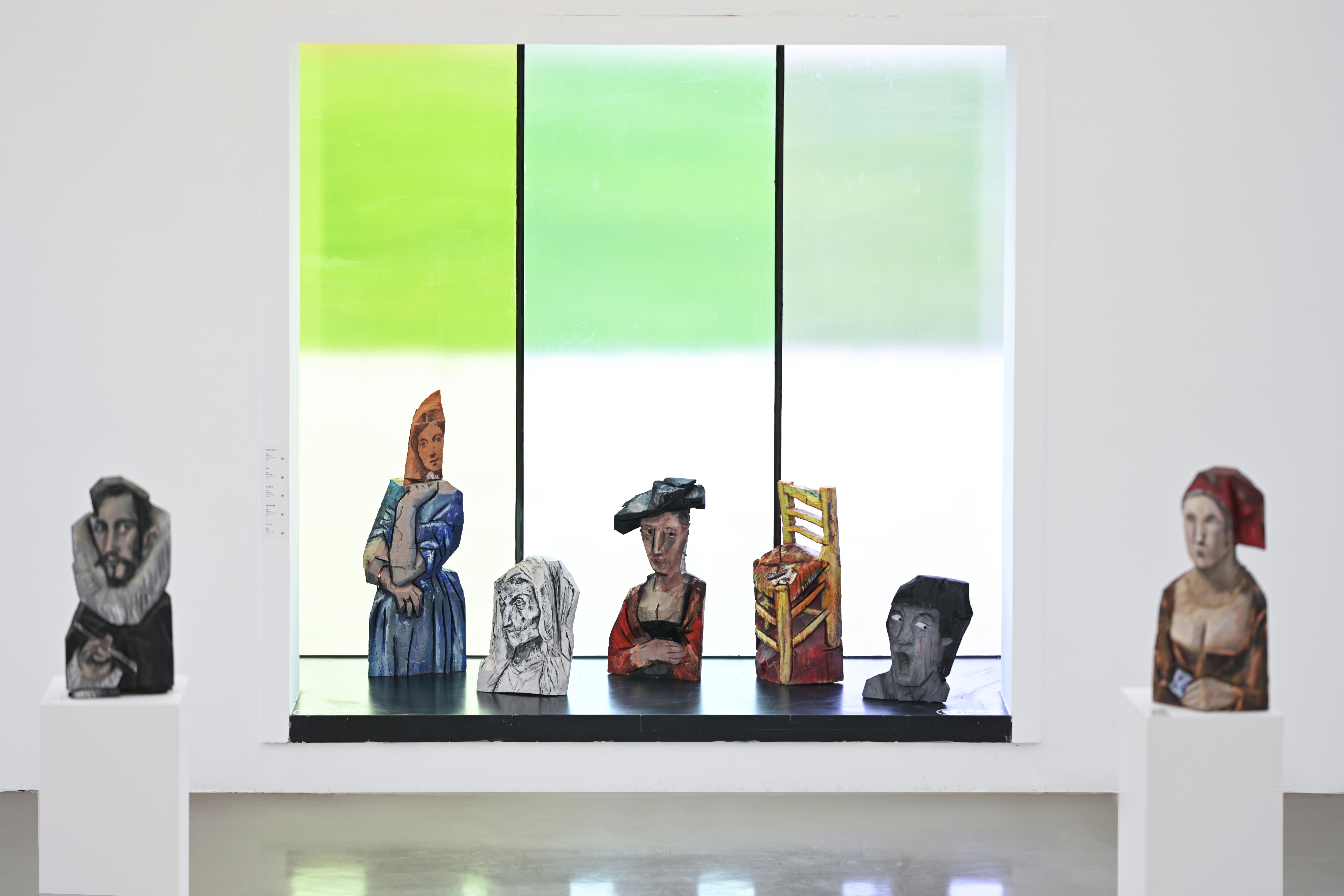 此次展览展出了陈伟豪、孙鹏、吴谦、王大广和郑听泉的艺术作品,他们都是80后艺术家,其中最年轻的一位生于1998年。在展览现场,展出了艺术家孙鹏的木雕作品《天才拉斐尔》,他与陈伟豪和王大广三位艺术家的作品虽源于西方传统绘画的母题,但都尝试重塑艺术表达,呈现出属于当下时代的视角。吴谦与郑听泉两位艺术家汲取东方美学的营养,重新阐释水墨、晕染、线条之美。