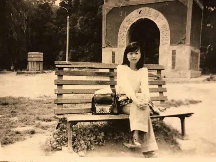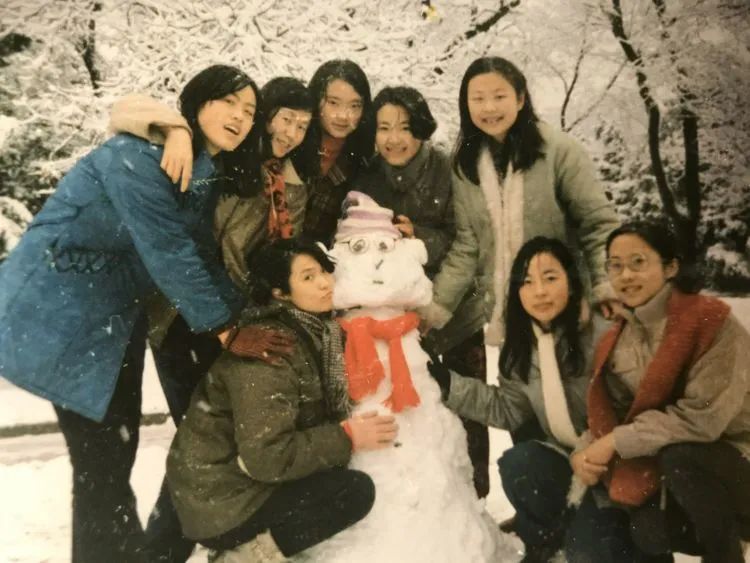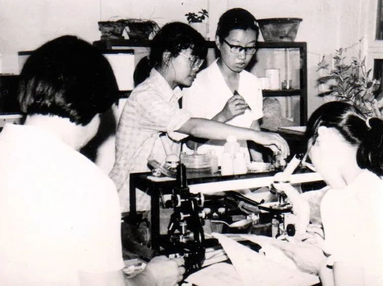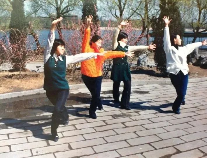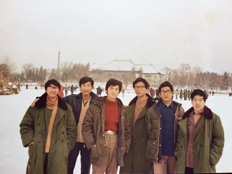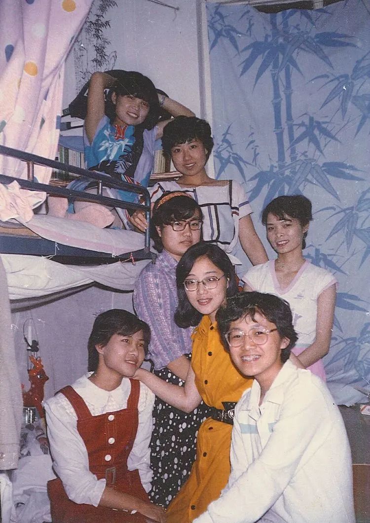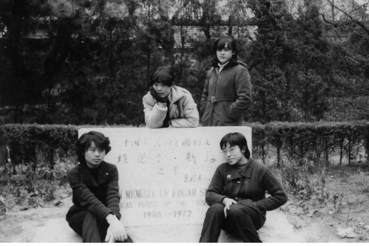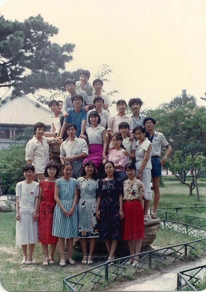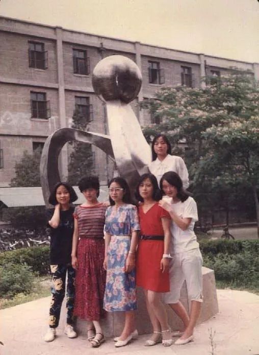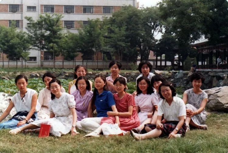 生物系女生合影。勺园前,后面是留学生楼。
