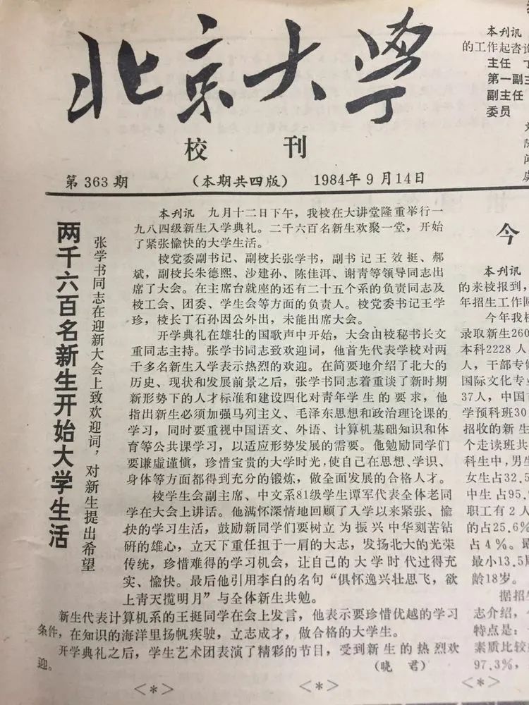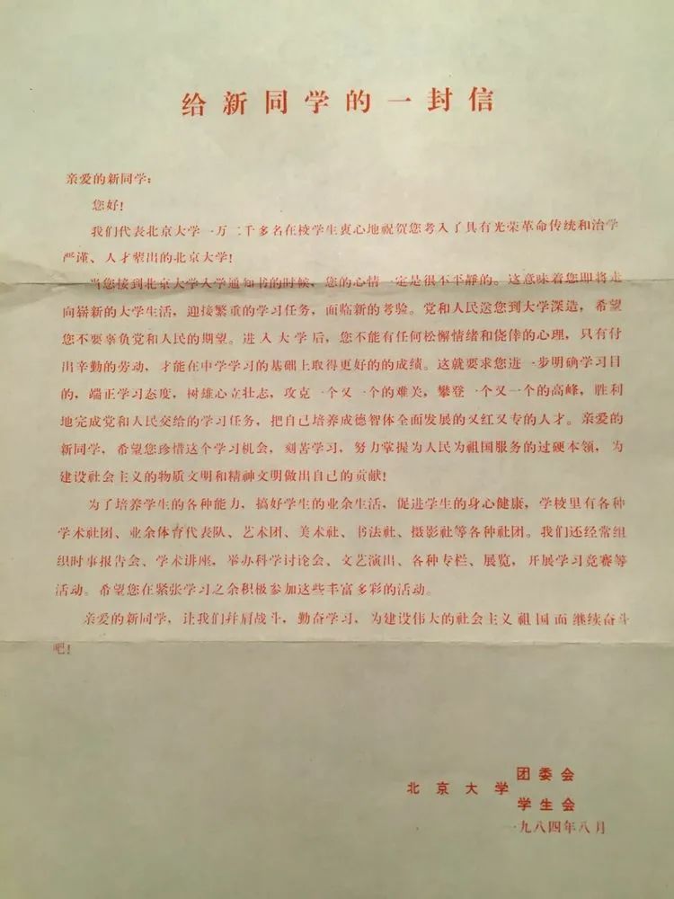 学校给84级新生的欢迎信