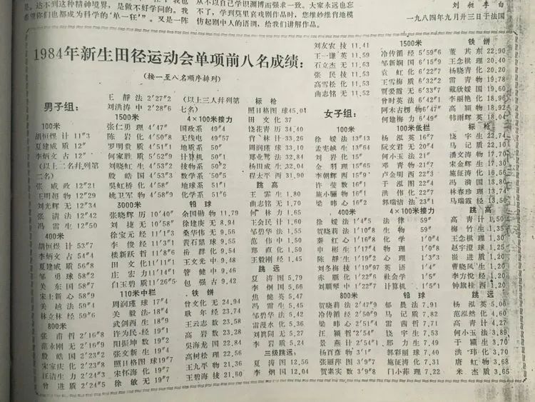 1984级新生运动会前八名成绩