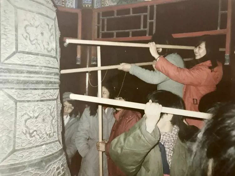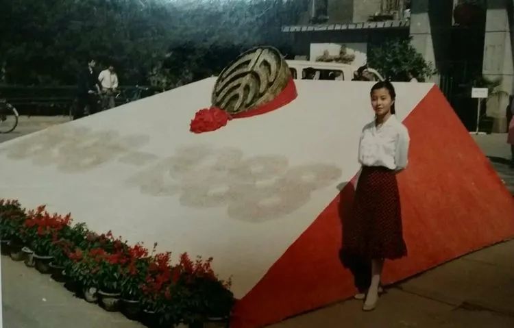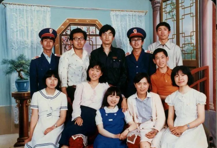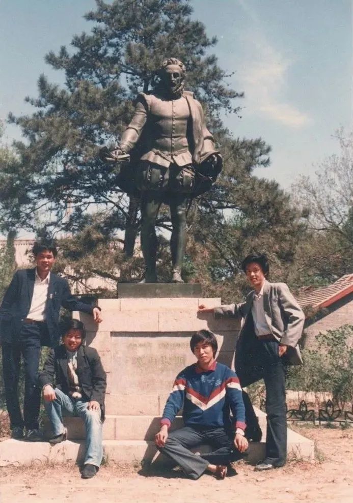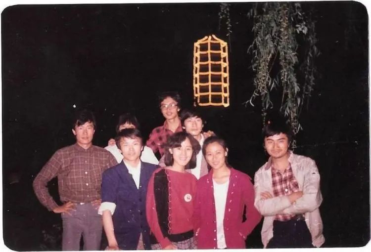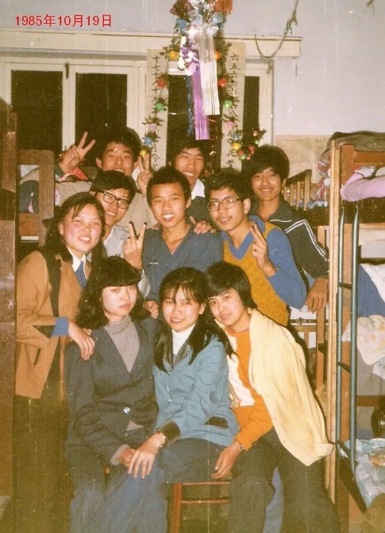 西语系德语专业的同学们在宿舍前合影。背景上的“镶牙”广告非常醒目。
