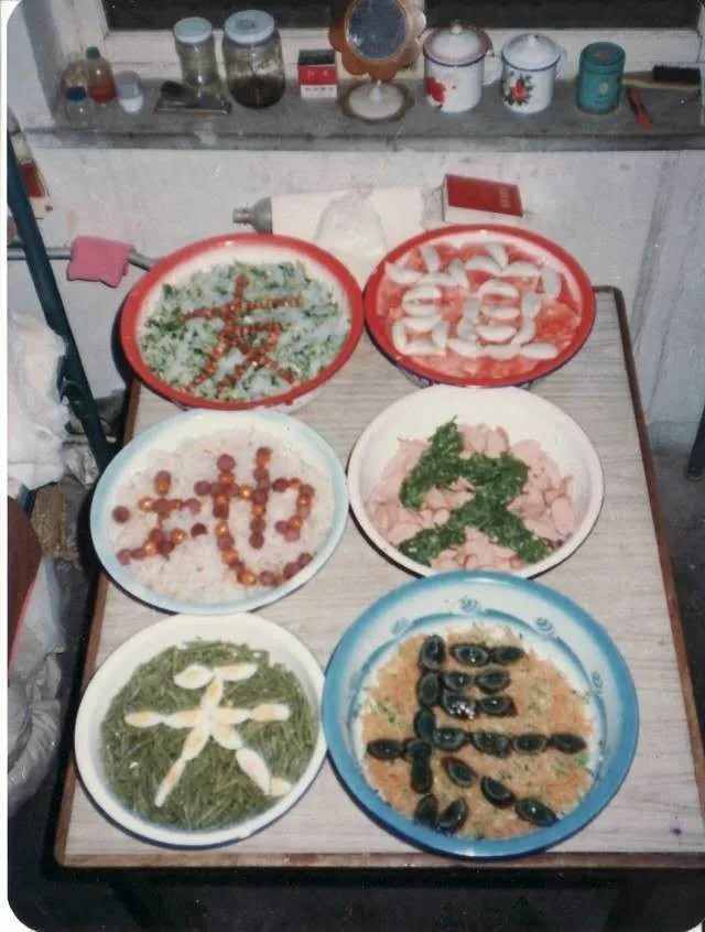 毕业前的分手饭。猜猜那些字是什么做的?我看出松花蛋、咸鸭蛋和葡萄