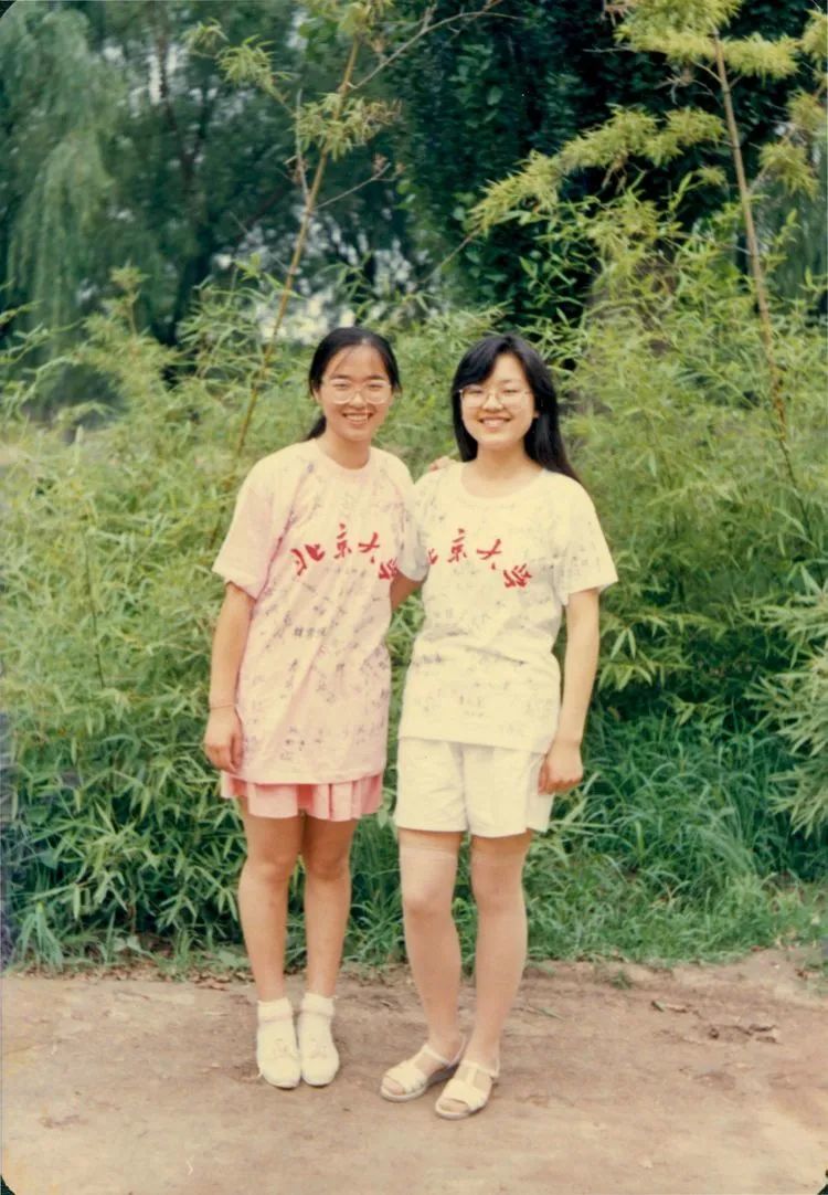 毕业前夕。同学们在北大的T-shirt上互相签名留念。粉色T-shirt就签满了同学的名字。