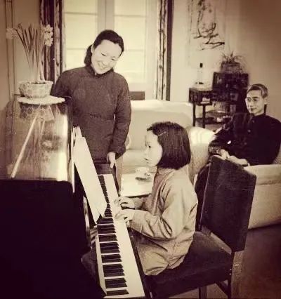 儿时的郭芹在父母陪伴下练钢琴