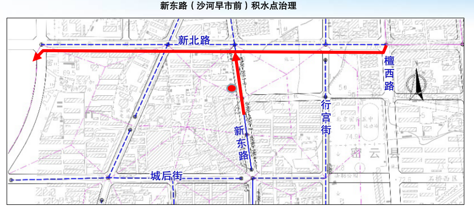 2. 新东路(沙河早市前)保留现状d800~d1000雨水管道并新建d2000~□4400×2300雨水管道。