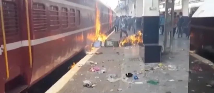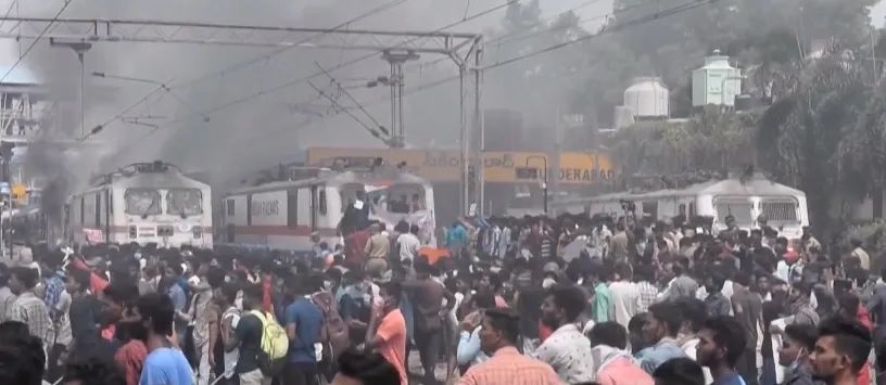 据《印度快报》18日报道,印度民众针对新兵役制度的抗议,已经蔓延到了8个邦。从当地时间15日开始,陆续有年轻人走上街头反对新的兵役制度。17日,愤怒的抗议者冲进比哈尔邦的一个火车站,打砸停在站台上的列车车厢,并点燃大火,导致多节车厢被完全烧毁,多个列车班次延误。