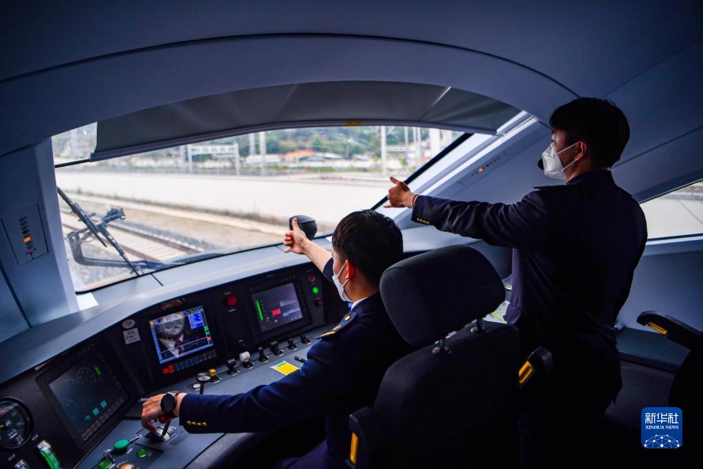 列车司机驾驶复兴号列车行驶在中老铁路上(6月1日摄)。新华社记者 江文耀 摄