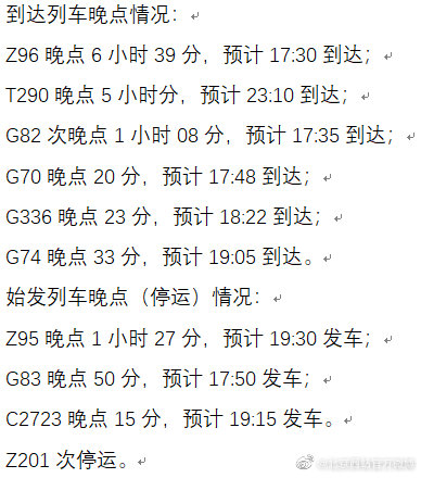 受南方降雨影响,截至6月21日17:00分,北京西站部分列车晚点,具体晚点时间随列车运行实时调整,请广大旅客及时关注12306网站信息和车站公告,妥善安排出行。
