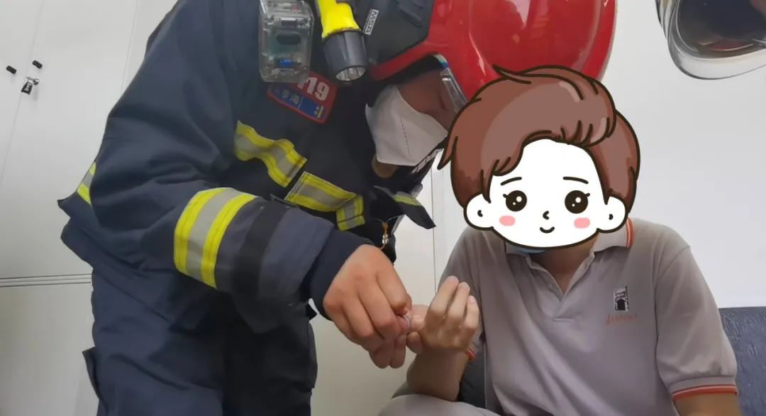在取下的那一刻,孩子连声对消防员叔叔们感谢,同时表示自己今后在玩耍过程中再也把圈圈环环的小东西胡乱套在手上了,随后孩子被送往了学校的医务室进行了简单的消毒处置。