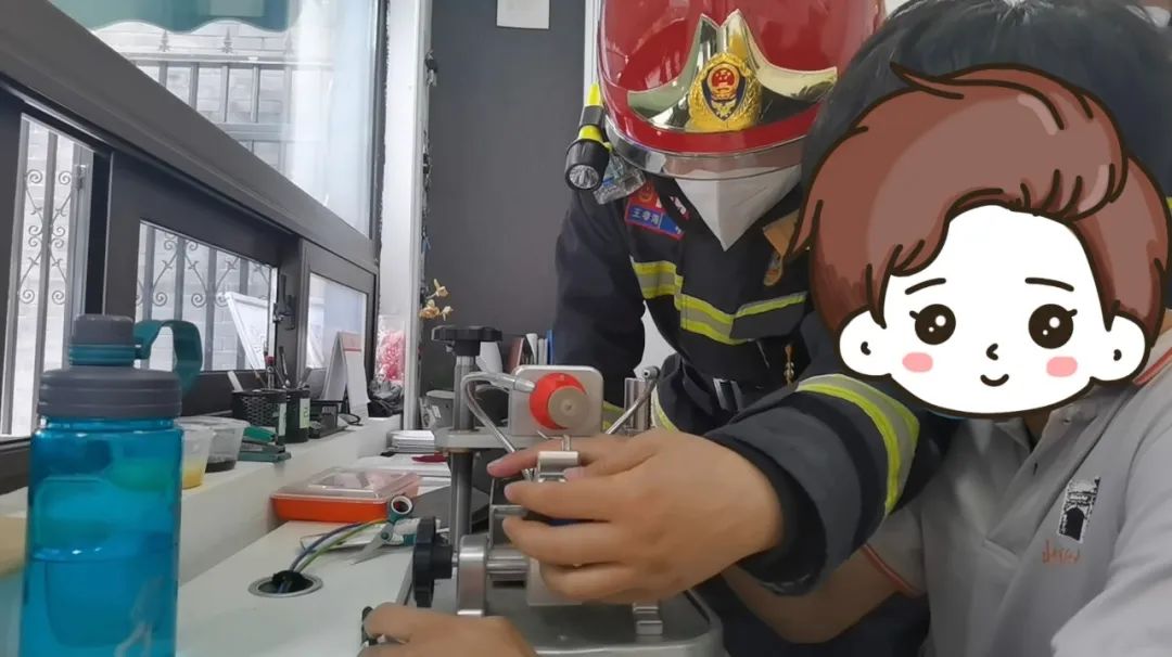 王孝海凭借多次的处置戒指卡手的经验,先用一个小铁片卡在螺母与手指之间,扩大操作空间,避免孩子的手指再次受到伤害,然后使用特种消防器材戒指切割机对孩子手指上的螺母准备进行切割,另一名消防员准备的矿泉水同时对手指进行冷却,以防止摩擦螺母过热导致手指被烫伤。在摘取过程中,王孝海站长一遍细心切割,一遍安慰孩子,不到两分钟,发现螺母马上断裂,为防止二次伤害,把手指从仪器上取下来,转用小钳子掰断,只听“咔”的一声,螺母应声断裂并被成功取下,孩子的手指除了红肿,并无大碍。