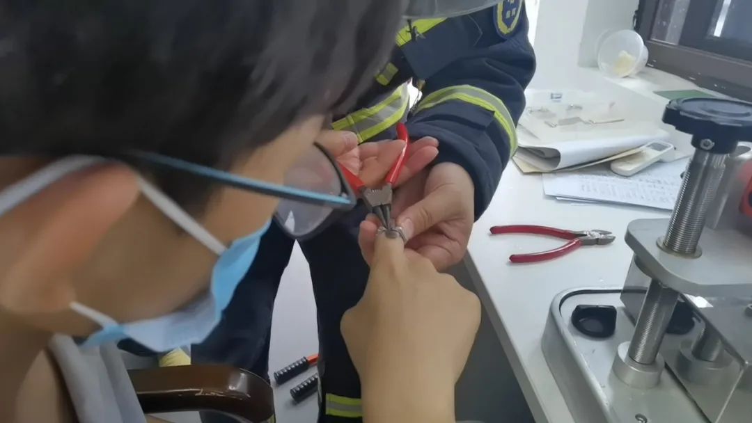 6月21日13时48分,西城区消防救援支队大栅栏消防救援站接到紧急出动任务。原来是北京师范大学附属中学的一名学生,将螺母套在手指上玩耍,结果卡在手上无法取出,学校老师试图帮忙,但是都没有成功。螺母卡上时间过久,孩子的手指越发肿胀了起来,情况紧急,学校的老师情急之下拨打了119联系消防员过来进行处置。