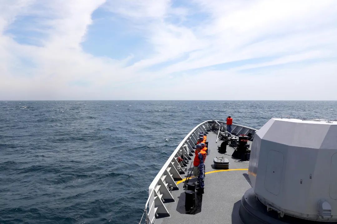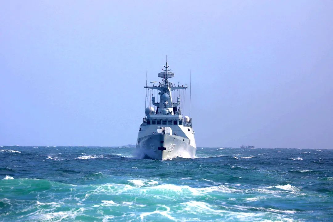 ▲参加中越北部湾第32次联合巡逻的中国舰艇破浪前进