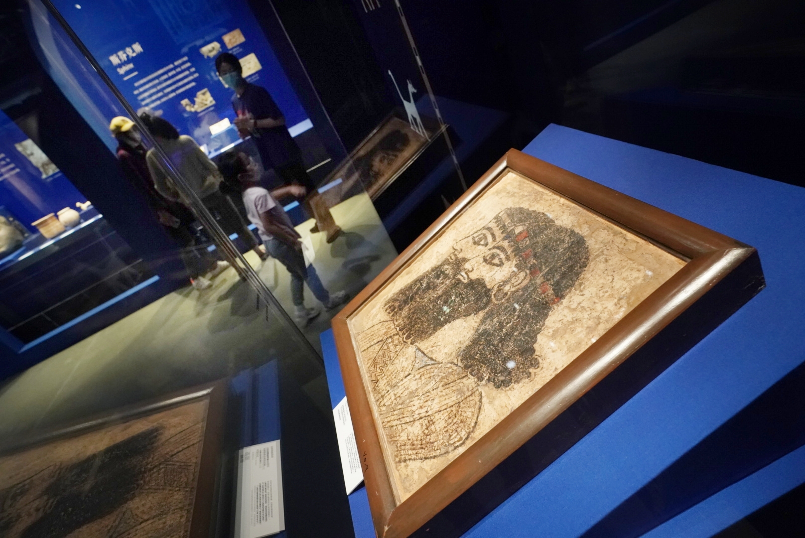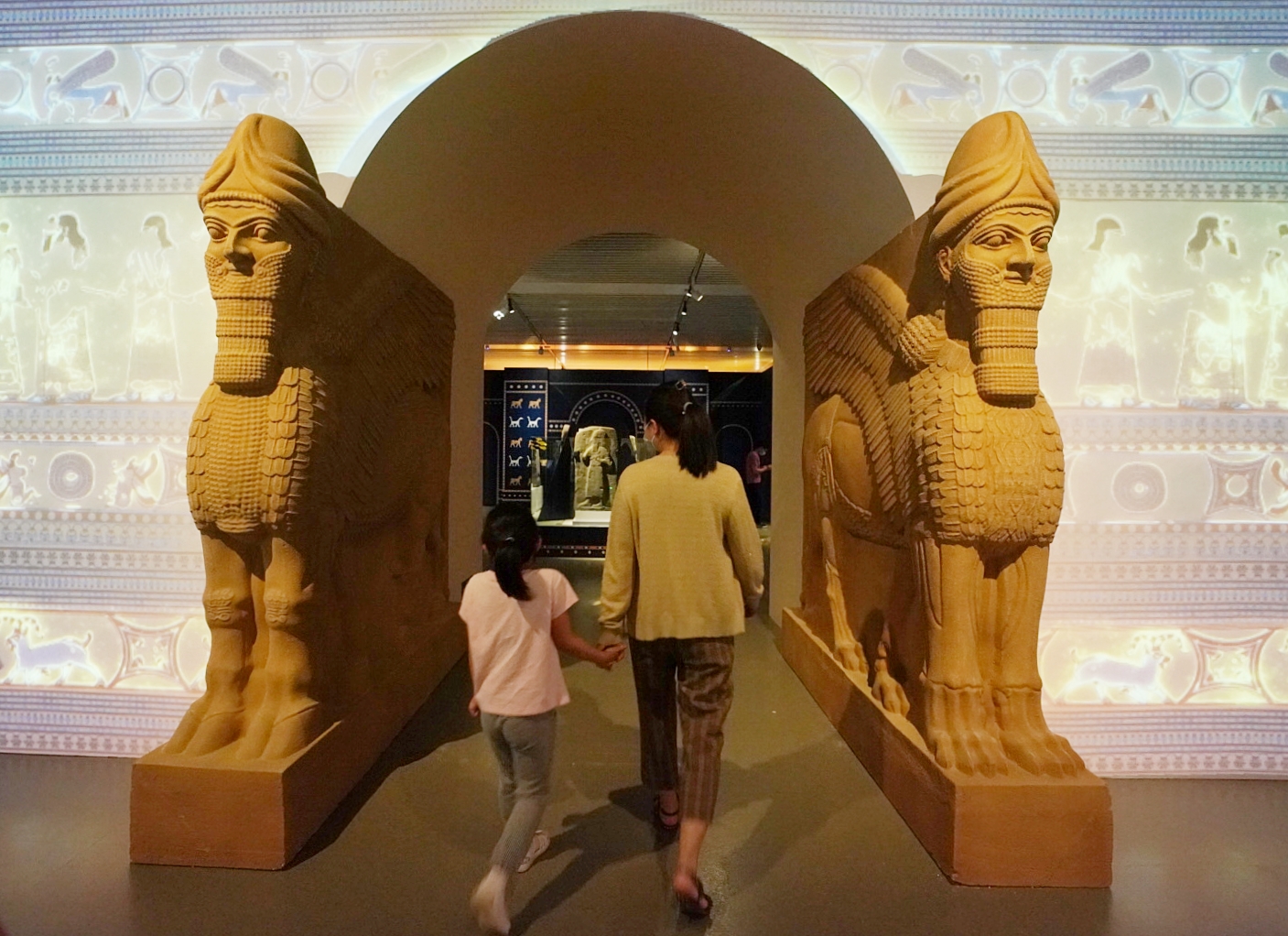 占据东西方交通要道的古叙利亚,一直是兵家必争之地。当亚述帝国征服这片土地时,在战争之余还留下了一笔艺术财富——浮雕。浮雕是亚述人伟大的艺术成就,人们称“浮雕之于亚述,相当于雕塑之于希腊,绘画之于文艺复兴时期的意大利。”展览上不仅有高近1米的人物浮雕等,也有小巧如同家居摆件的小型浮雕。其中《斯芬克斯雕件》以生动丰富的细节刻画了羊头狮身的斯芬克斯。展览主办方还制作了一人多高的装饰摆件——人面狮身的斯芬克斯,工作人员介绍,其实斯芬克斯还有另一种形象——鹰头狮身。