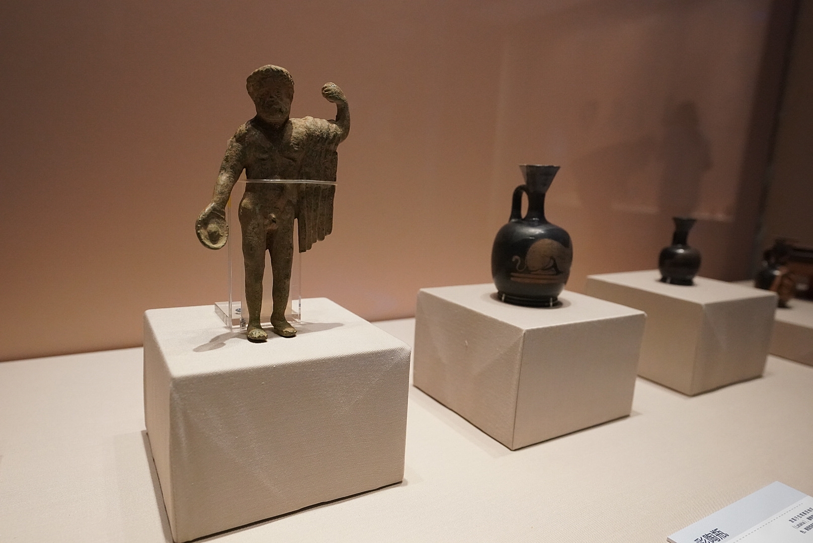 展览以时间为序,徐徐展开一幅历史画卷。最悠久的展品当属50万年前、旧石器时代的一把手斧。当时的古人类已掌握熟练的打制石器技能,手斧就是当地最具特色的工具。在展览上亮相的手斧形如泪滴,周身明显由人为打制而成,大小正好可以被成年人握在掌中。由于它左右两边和正反两面基本对称,也被学界公认为是人类历史上第一种标准化加工的重型工具,代表了古人类进化过程中石器加工制作的最高技术水平。