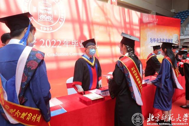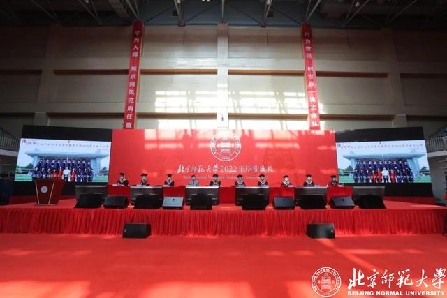6月23日上午,北京师范大学举行2022年毕业典礼。本次典礼在邱季端体育馆设主会场,在校内各院(系)设分会场,并通过新华网等11个网络平台全程直播。学校党委书记程建平,党委副书记、校长马骏,党委副书记孙红培,副校长周作宇,党委副书记李晓兵,副校长涂清云、康震,校友代表、中国科学院院士陈松蹊,学位评定委员会委员、各院(系)负责人以及2022届毕业生代表在主会场参加毕业典礼,各院(系)学生工作负责人、毕业班班主任及在校2022届毕业生在各分会场参加毕业典礼,不在校毕业生在线上参加毕业典礼。典礼由副校长涂清云主持。