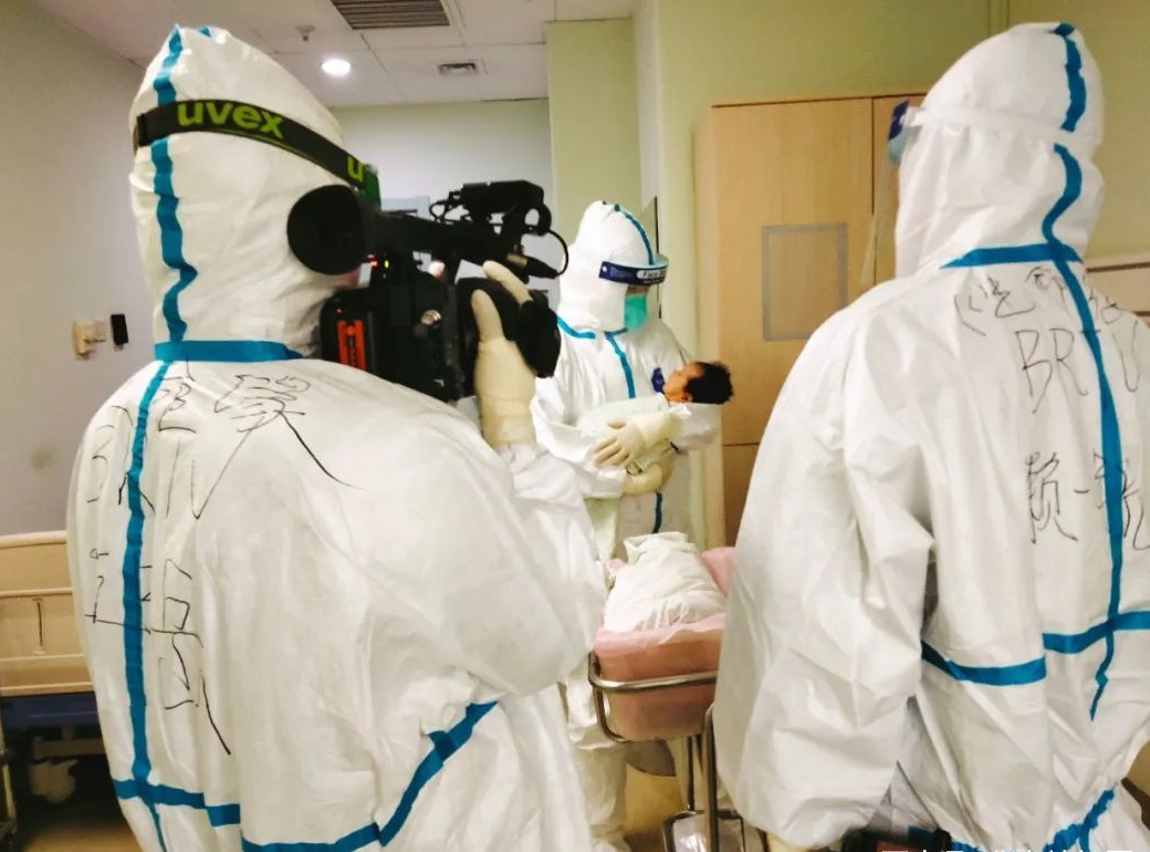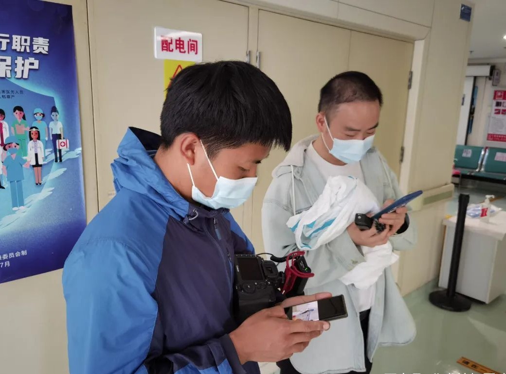 有一天中午,应急区里两位护士长给我打电话问知道不知道记者在哪里拍摄,原来此前讨论的孕产妇生产的选题,患者突然发动要生产,于是策划群里紧急@各区护士长找人,还好最终找到了两位小伙伴赶上了拍摄。这以后,每天向我“报备”第二天拍摄计划也成为我和一锐晚上交流的内容。还有一天晚上,120要转送一位28天的小患儿,当时两位记者已经回到酒店,赶回医院再穿防护服进去,显然来不及。于是,在一锐的指导下,护士留存了从救护车到病房的转送视频素材,我和一锐开玩笑:“谢谢帮我们培养宣传人才。”
