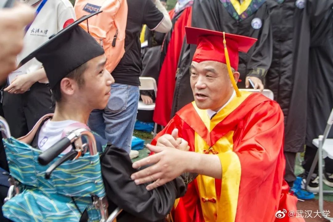 其中,有一位坐轮椅的毕业生