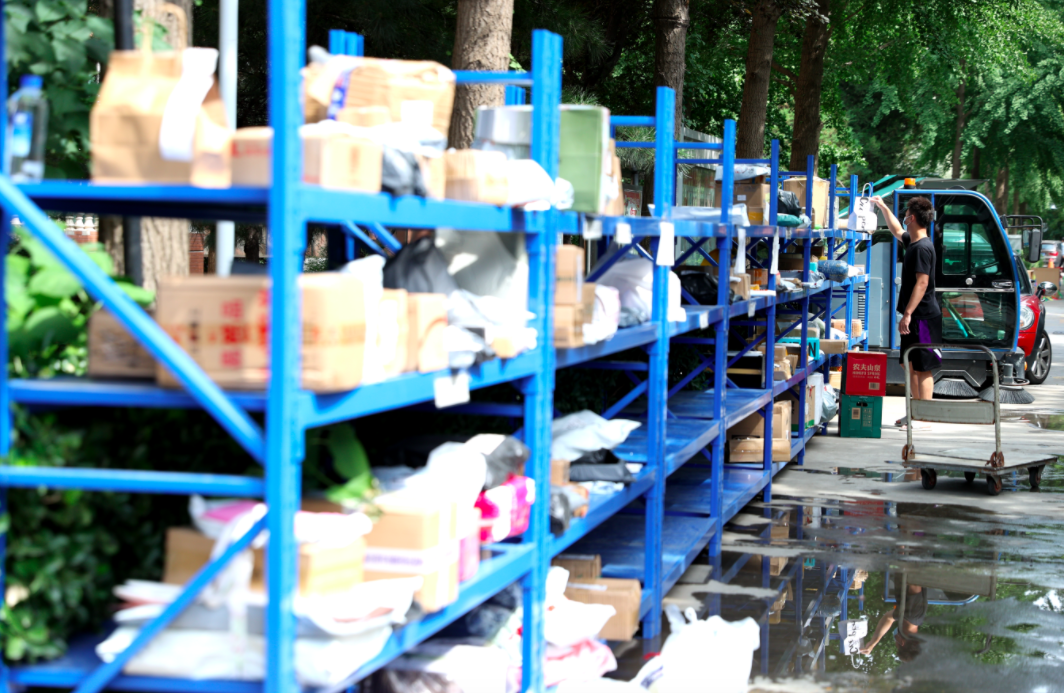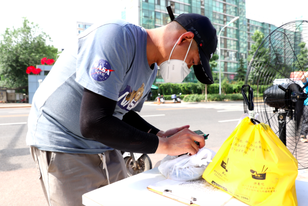 “小区封控之后,为了方便居民接收快递、外卖,我们第一时间在小区内部、外部设置了快递架。小区内快递架以楼栋分区,方便管控区居民寻找。”现场一位工作人员告诉记者,“封控区的居民物资则由我们工作人员直接点对点送到家门口。”小区门口,几顶崭新的帐篷成了工作人员暂时的“办公室”。“有了帐篷之后,上门核酸、运送物资的工作人员都能够在这儿穿好防护服,同时也方便了防疫物资的存放。”该工作人员说。