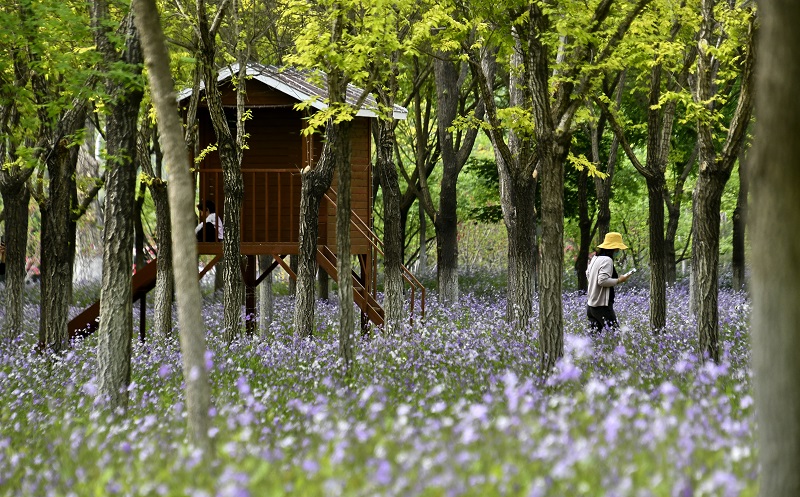 温榆河公园副经理栾鸣介绍,公园建设时尽量保留了原生树,模拟自然之中的森林。林地里还镶嵌有本杰士堆、昆虫旅馆,开辟了一处处小微湿地,让口渴的鸟兽有水喝,还栽种海棠、黑枣等口粮树。