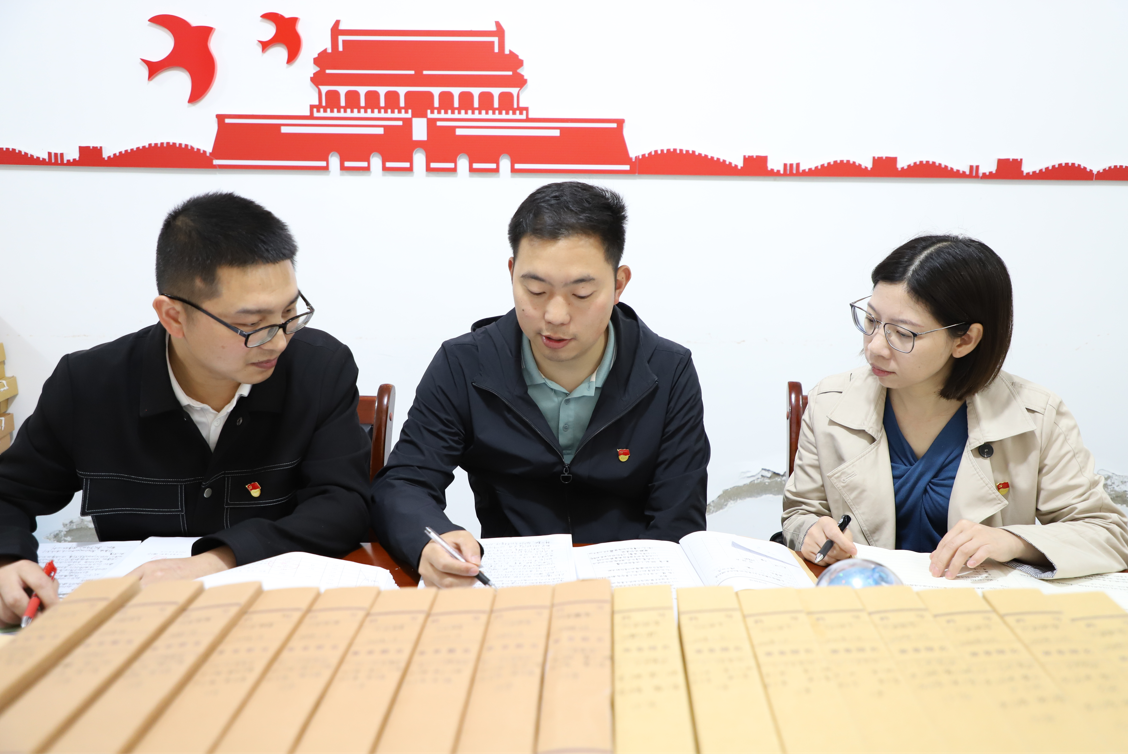 重庆市巴南区纪委监委建立健全领导干部廉政档案,通过定期动态更新、档案分析、问题研判等形式,强化对各级党委(党组)“一把手”履职情况的日常监督,精准“画像”。图为该区党风政风监督室干部分析“一把手”廉政档案建设情况。(重庆市巴南区纪委监委 邓箭 摄)