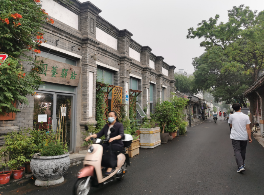 目前,胡同两侧还设置了硬质隔离带,隔离带后面摆放着一排排种满绿色植物的花箱,漫步胡同,古树鸟语一路相随,京韵京味浓厚。