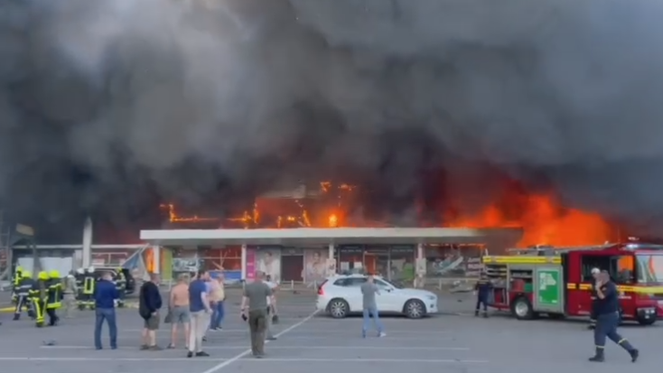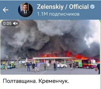 乌总统泽连斯基:乌克列缅丘格一购物中心遭火箭弹打击 内有上千平民