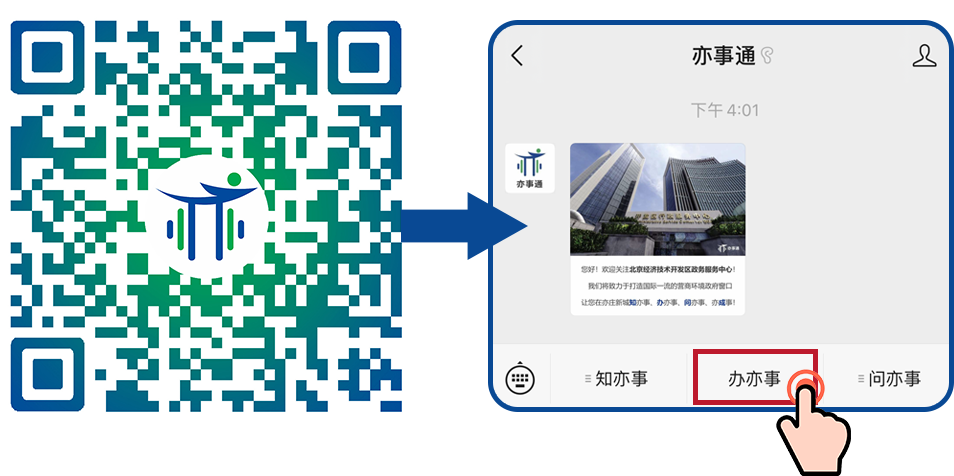 识别二维码,关注“亦事通”公众号,点击子菜单中的“办亦事”栏目。