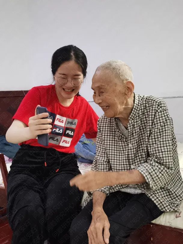 2021年7月,在研究中心志愿者的帮助下,雷金二老人与阔别多时的妹妹通过视频电话得以相见。两姐妹通过小小的手机屏幕互诉思念。图源 | 中国“慰安妇”问题研究中心