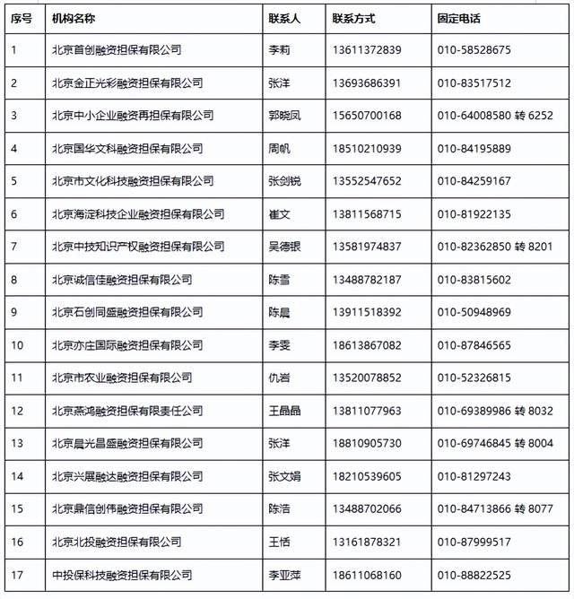 请直接联络各担保机构,详见下表↓