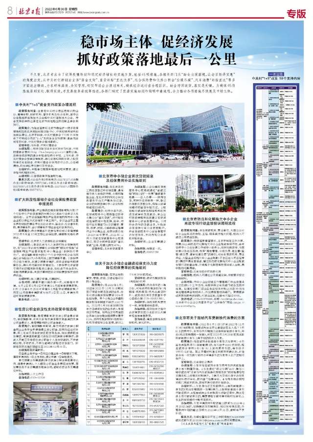 近期,北京市出台统筹疫情防控和稳定经济增长的实施方案,包括45项措施,各相关部门从“助企业脱困境,让老百姓得实惠”的角度出发,从中关村创新创业主体“资金支持”、首贷补贴“直达快享”、社会保险费和住房公积金“应缓尽缓”、汽车消费“补贴直达”等多方面送出暖政,力求精准高效、务实管用,切实帮助企业渡过难关,确保经济运行在合理区间。