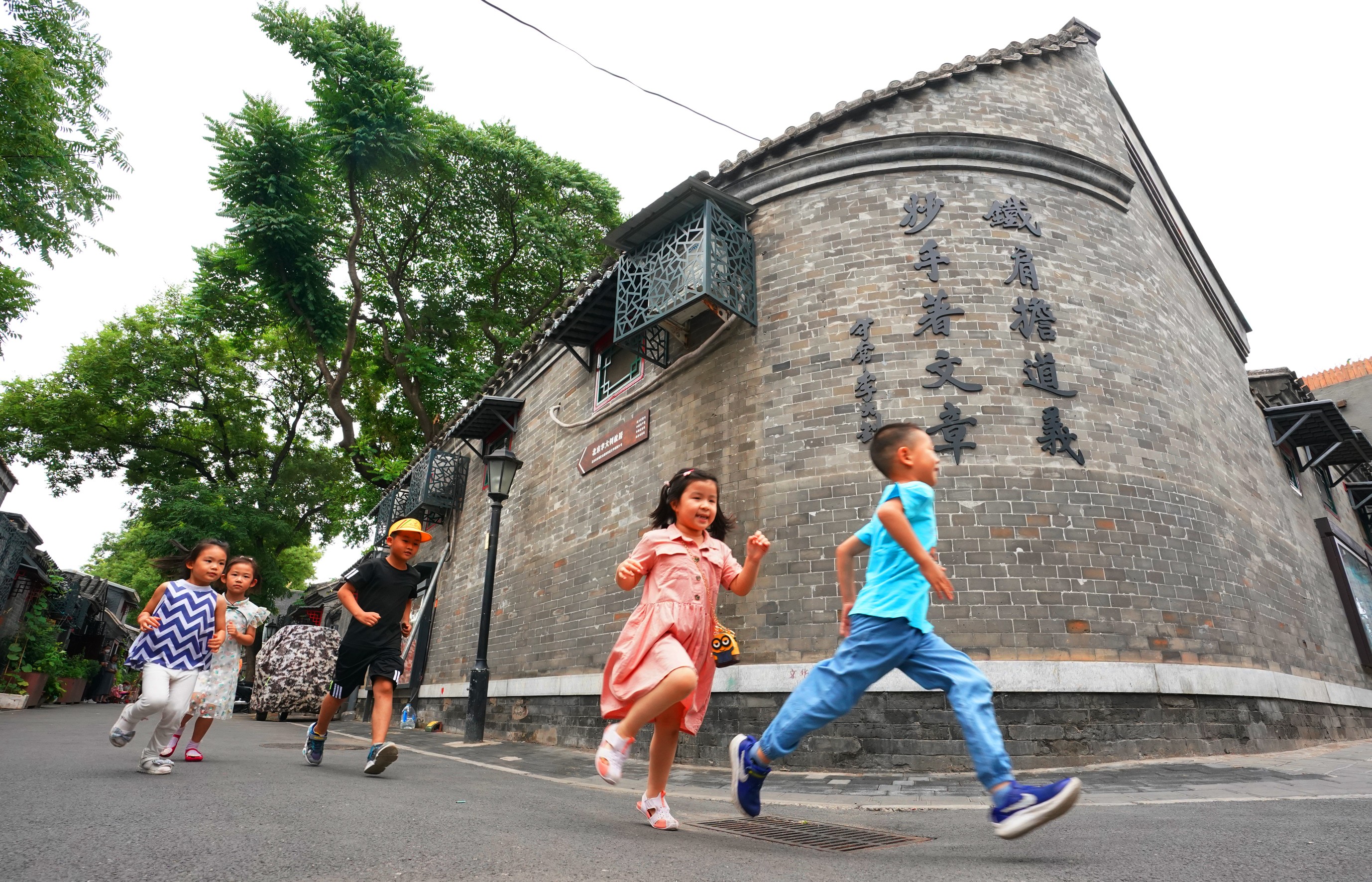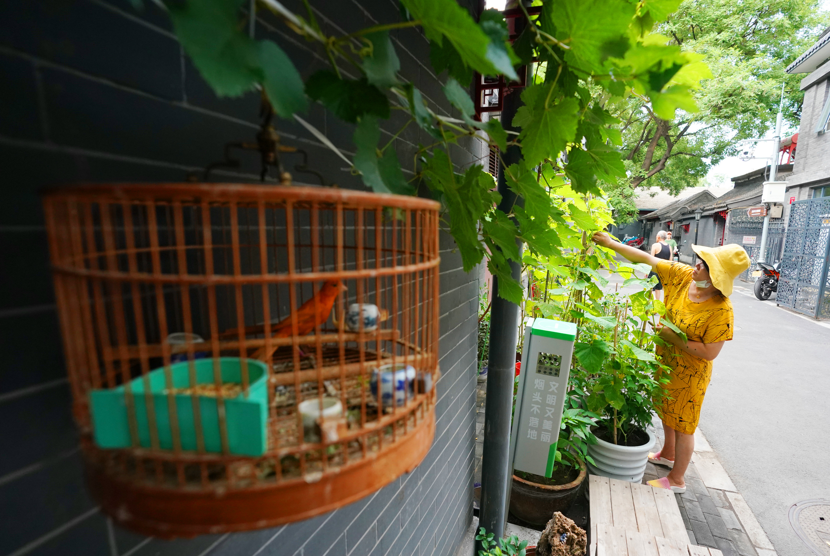 正值盛夏,位于西城区的文华胡同绿树成荫,微风阵阵,没有机动车的轰鸣,有的是孩童嬉闹、老人闲聊、鸟语蝉鸣、鲜花怒放,青砖灰瓦、飞檐反宇的古朴静谧中,散发出闲适温馨的“烟火气”。