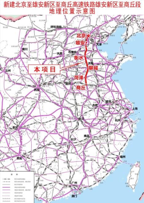 京雄商高铁是国家中长期铁路网规划“八纵八横”高速铁路主通道中京港(台)通道的重要组成部分,协同京广高铁、京沪高铁打造我国高速铁路网南北向通道的整体格局,是我国中部地区南北向铁路旅客运输的主通道,将对沿途省份经济社会发展意义重大。