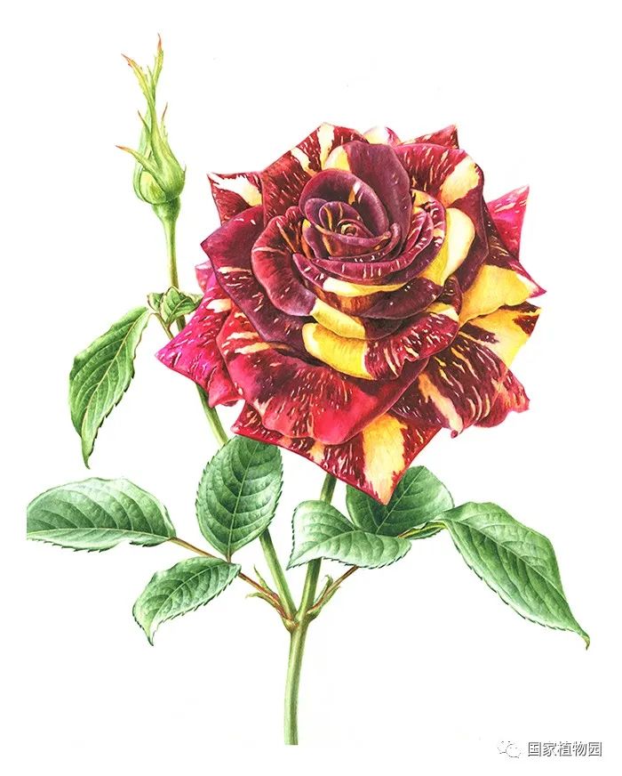 △‘流星雨’月季(2019年世界园艺博览会手绘月季竞赛金奖作品)
