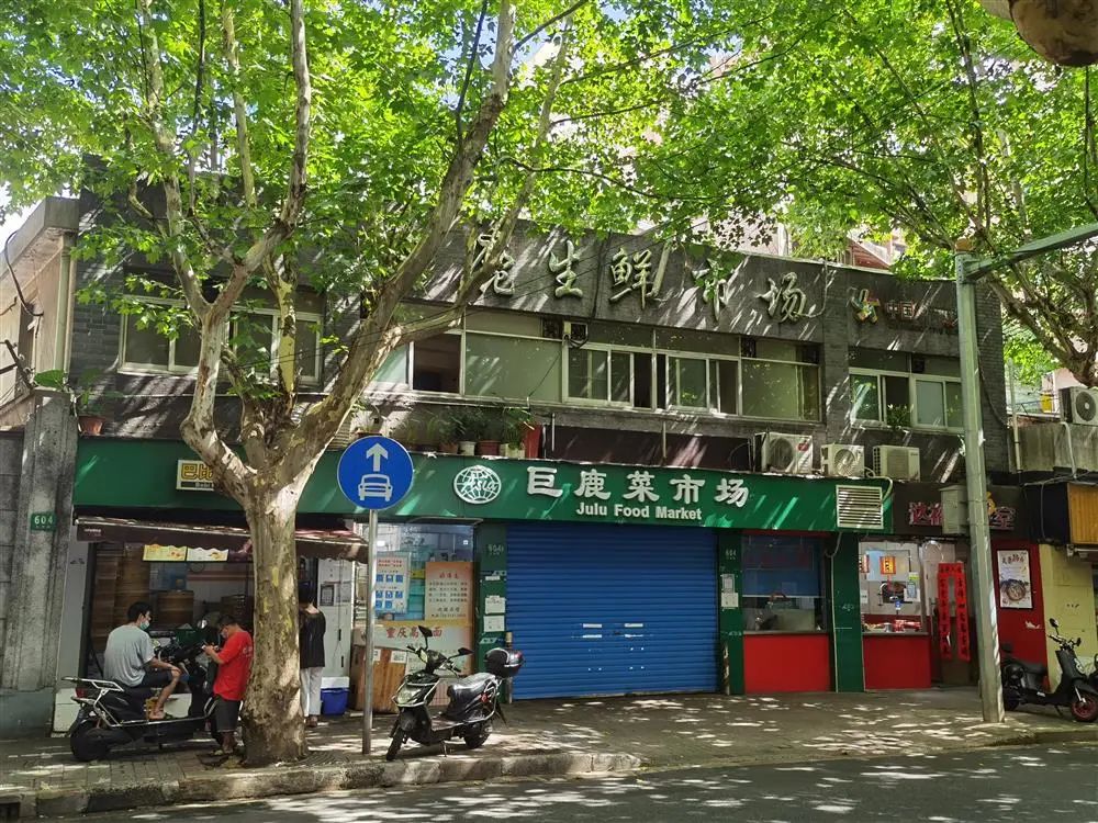 △静安区巨鹿路604号的巨鹿菜市场也没有开门。