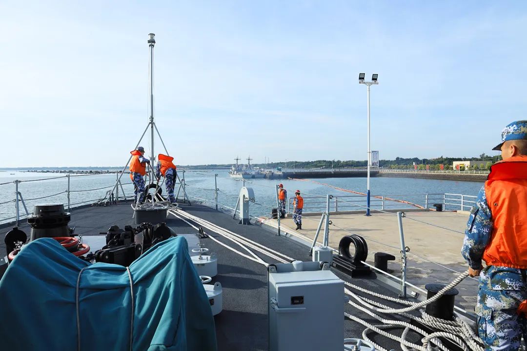 编队各舰艇还组织离靠漂泊舰训练