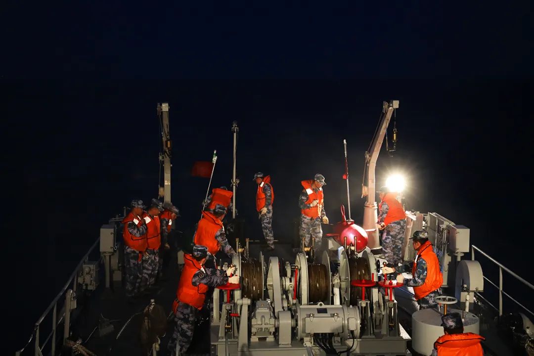 官兵们随即部署水下灭雷具
