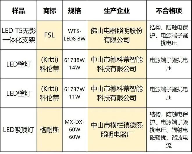 上海:灯具市场四成产品不合格,涉佛山照明、科伦蒂......