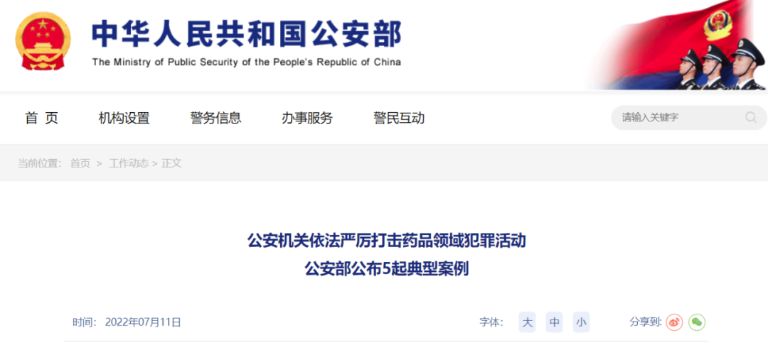7月11日,公安部公布5起涉医药犯罪典型案例,震慑违法犯罪活动。其中涉及张某等人利用假药诈骗中老年患者案。经查,犯罪嫌疑人张某等人通过互联网购买多种标示有“食证字”“食健字”等批准文号、同时宣称“主治功能”的产品,通过发布虚假广告、冒充医药专家等方式向中老年特病患者销售实施诈骗,涉案金额5000余万元。