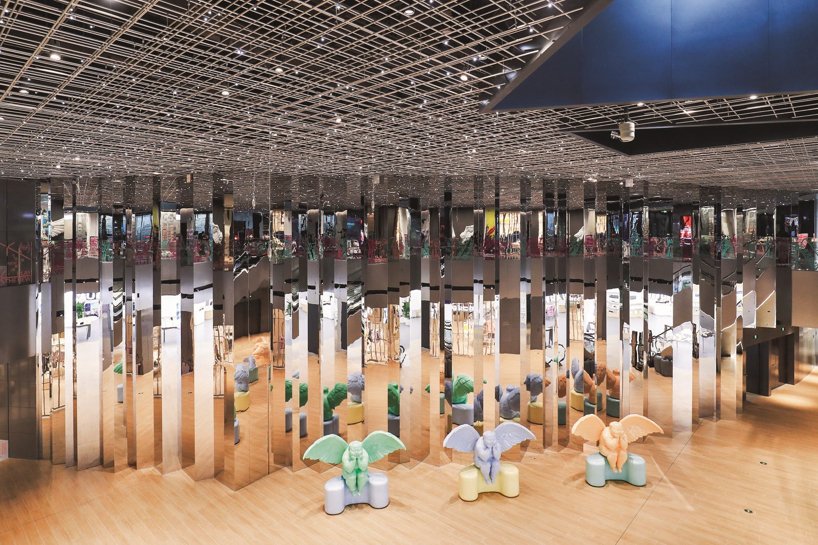 地面广场打破绿地公园与商业卖场的边界,24小时免费开放;下沉区域,超过20家首店和全新概念店及潮流品牌聚集,重塑核心区的时尚活力;场内场外,论坛、展览、秀场、外景地等新业态轮番登场,吸引各路客群。广场建筑弱化了商业特征,整体呈现古朴的灰色调,更像是一座博物馆。