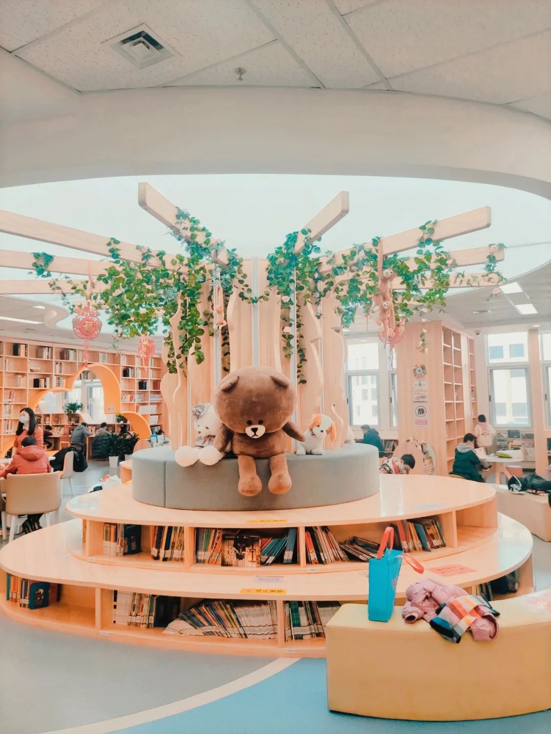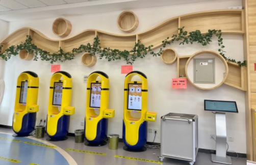 在顺义区图书馆中,智能设备随处可见,少儿借阅区小黄人造型的终端机器吸引小朋友自己动手的乐趣,感受科技借阅。