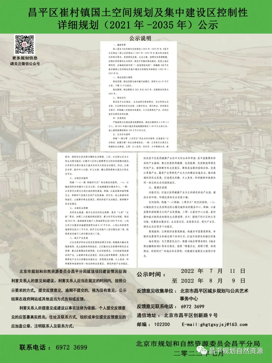 昌平区崔村镇国土空间规划及集中建设区控制性详细规划(2021年-2035年)公示
