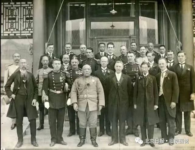 袁世凯与外国将领的合影,他身旁就是莫理循。