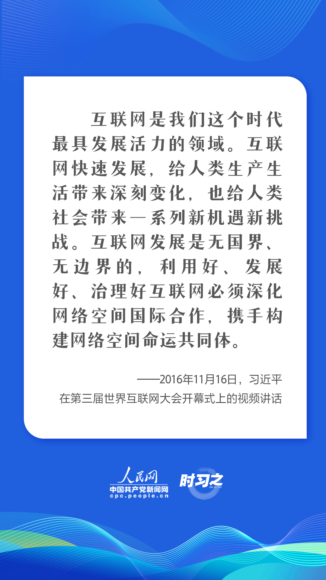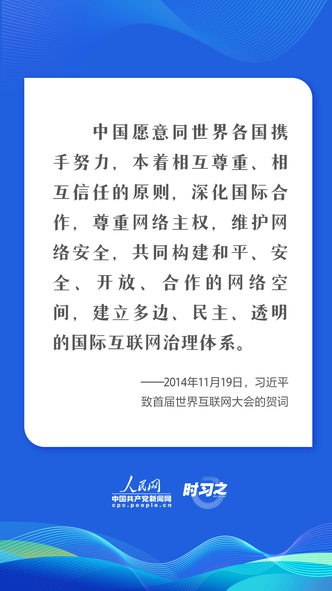 7月12日,国家主席习近平向世界互联网大会国际组织成立致贺信。他强调,网络空间关乎人类命运,网络空间未来应由世界各国共同开创。这些年,习近平数次就互联网发展大势、网络空间治理作出重要论述,并多次在不同场合发出“中国倡议”,为世界互联网发展凝聚合力。