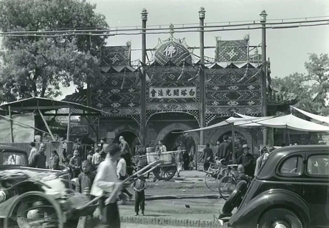 1937年,旧都文物整理委员会募集资金修缮白塔。1938年5月,特别邀请西藏安钦活佛举行了为期三天的开光法会。在此期间,白塔寺山门前搭建起了彩牌楼。